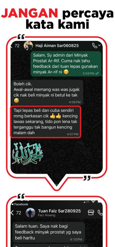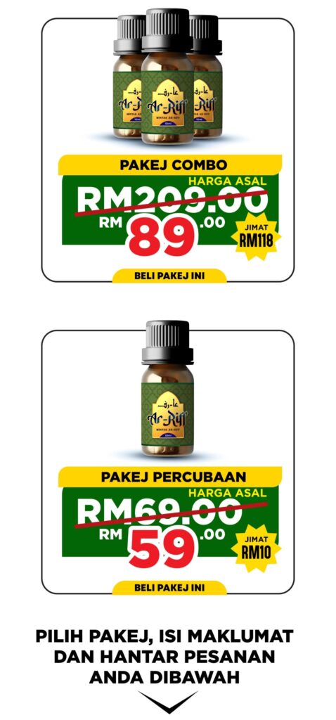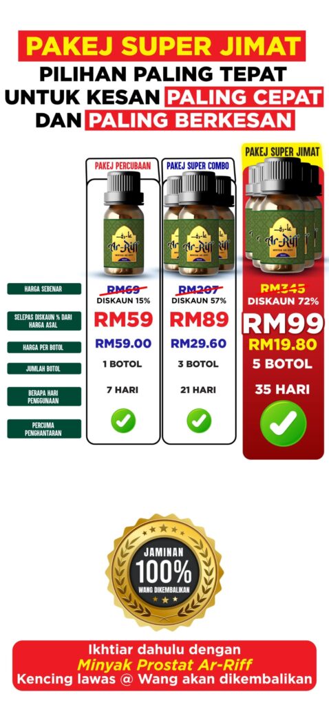 Minyak Prostat Ar-Riff hanya untuk kegunaan luaran sahaja.